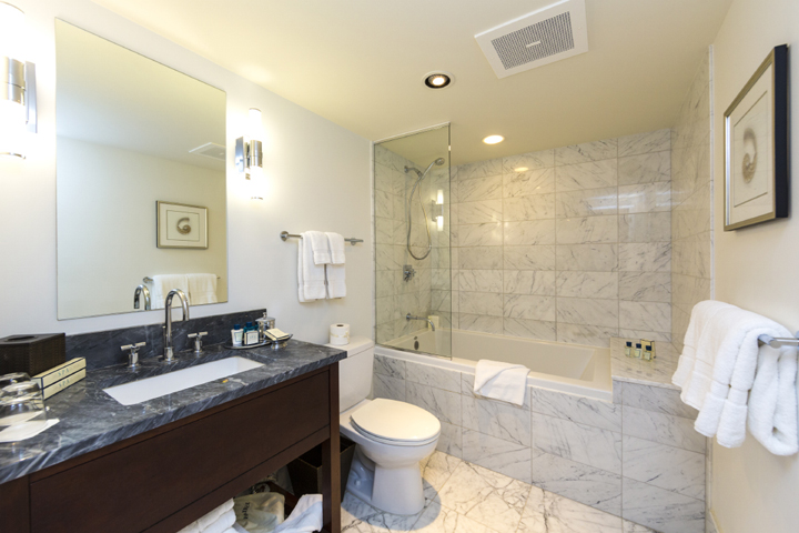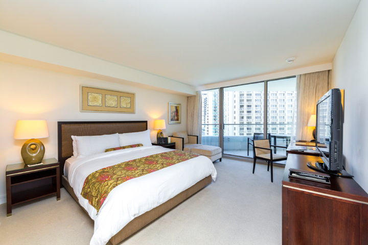 過ごしやすいステュディオには、ホテルのお部屋としては珍しい使い勝手の良いミニキッチンがついています。白を基調にした明るい室内からは青い海と空を眺めることができ、また日本人には嬉しいバスタブ付きのゆったりしたバスルームがついています。高級感ある家具はもちろん、床材にはマーブルを使い、トランプならではのワンランク上のラグジュアリーな雰囲気を醸し出しています。